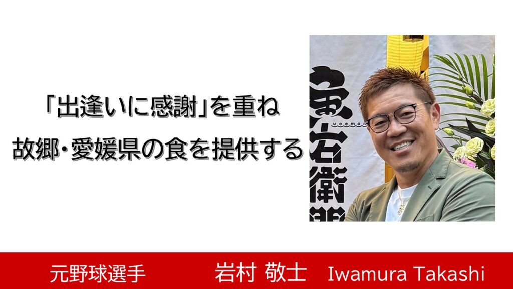 現役引退後は、愛媛県今治市内で2年間パチンコ店の住み込み店員として働いた後、再び地元・宇和島に帰還した岩村さん。今度はいちから職を探し水産養殖会社に就職すると、2005年には「自分がおいしいと思ったものを提供したい」という思いから独立した。それから20年余りが経過した現在、岩村さんは様々な店舗業態を展開し、いまや愛媛の食を人々に楽しんでもらう伝道師的立場にある。