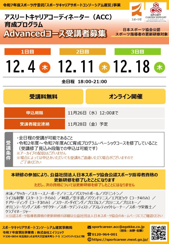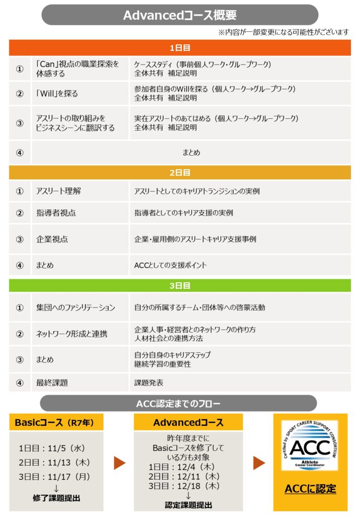 令和7年度アスリートキャリアコーディネーター(ACC)育成プログラム アドバンスドコース申込受付開始のお知らせ
