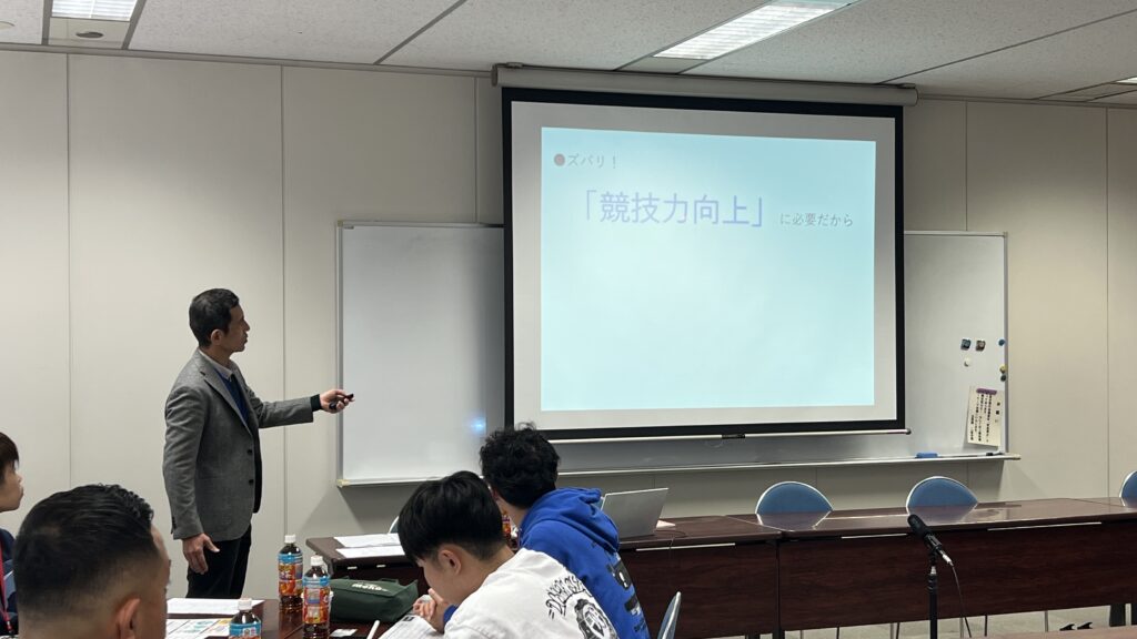 また、この研修には監督やコーチも加わり、同じテーブルで選手たちと一緒に講義やワークに参加されていました。