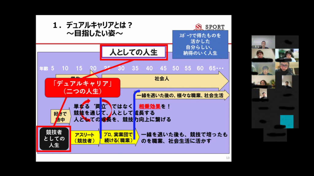 今回は日本パラカヌー連盟とスポーツキャリアサポートコンソーシアム(SCSC)の協働プロジェクトとして、所属選手を対象に「デュアルキャリア」をテーマとしたワークショップを実施いたしました。