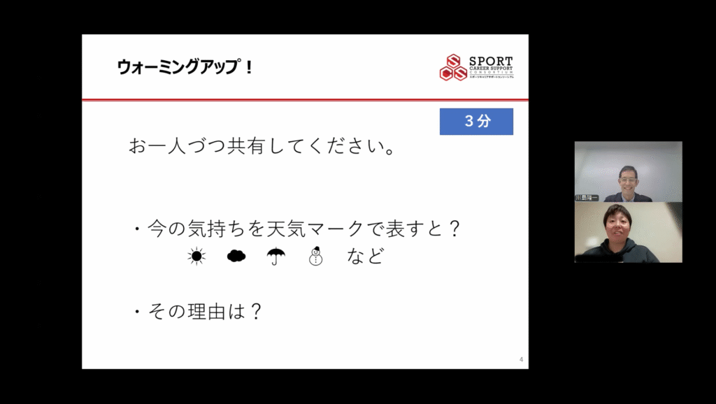 今回のワークショップは、競技者として、一人の人間として自分自身を見つめ直すとともに、将来のキャリアについて考える時間となりました。